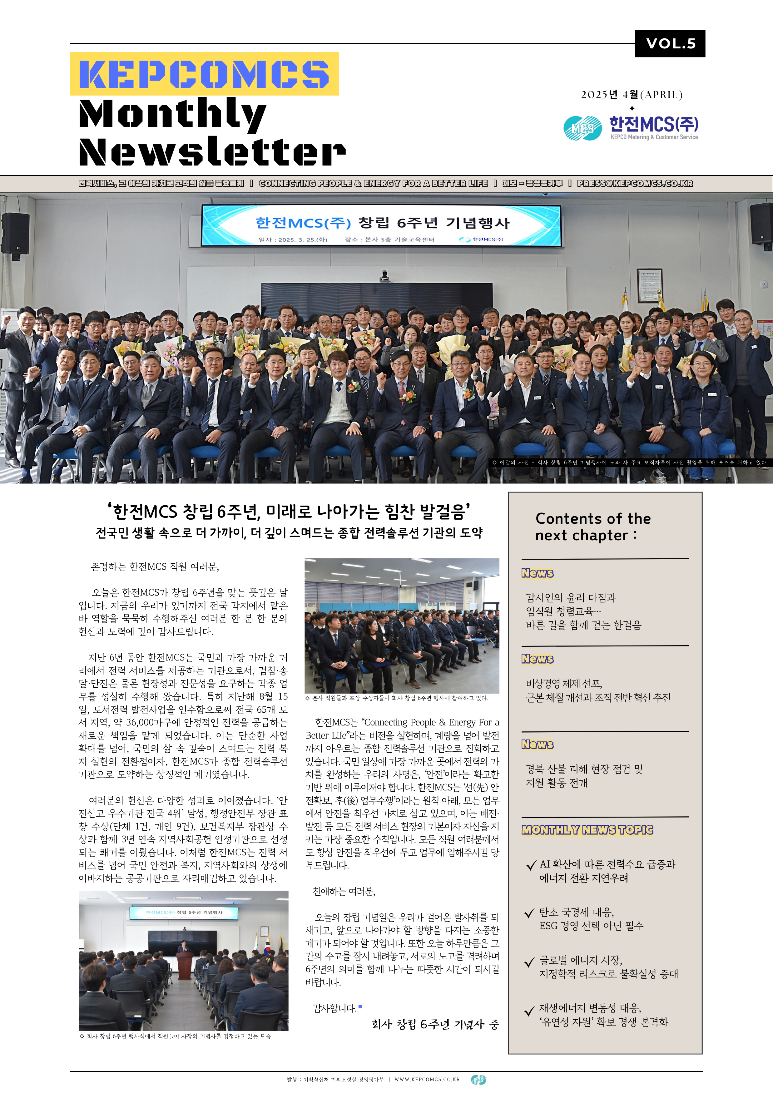 | 한전MCS, Monthly Newsletter 5월호 (0) | 2025.06.18 |