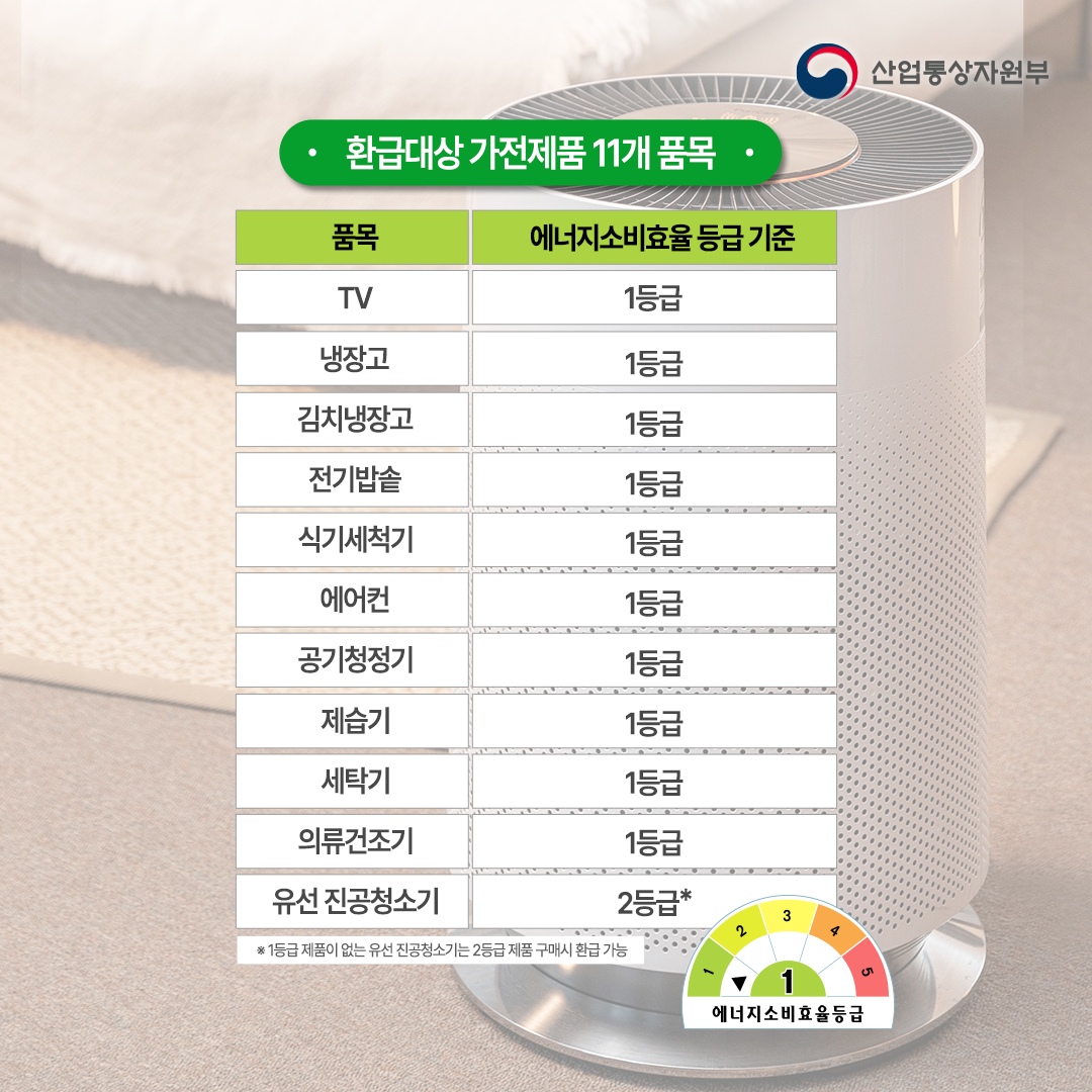 #산업통상자원부 #한전MCS #공공기고나 #추경 #추경예산 #으뜸효율 #가전제품 #에너지효율 #1등급 #고효율가전 #환급