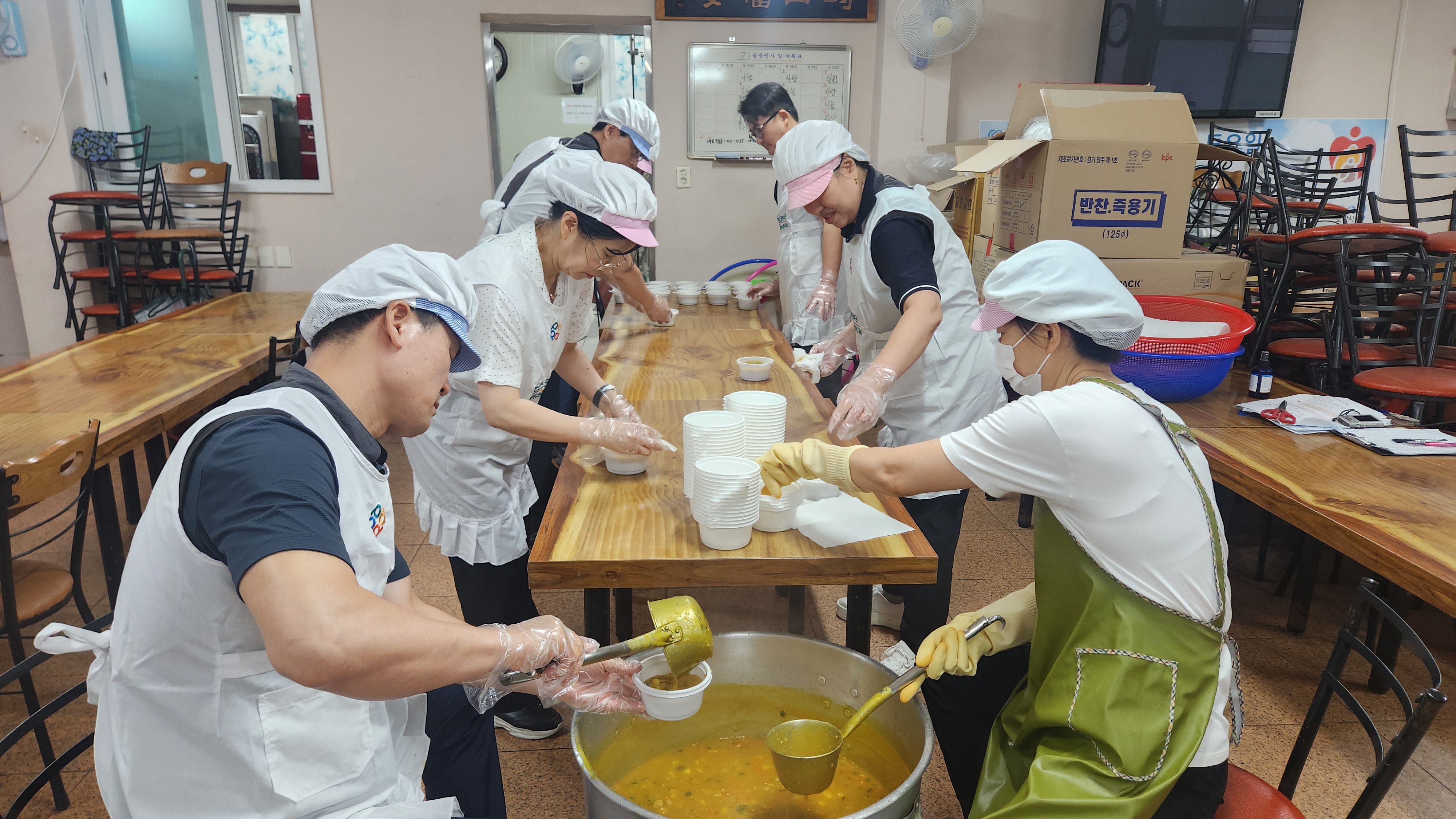 포항울릉지점(지점장 박대호)은 지난 7월 17일 포항시 남구 대잠동에 위치한 포항 사랑 실천의 집 무료 급식소에서 봉사 활동을 시행했습니다. 무료 급식소 봉사자들과 취약계층 85명의 어르신들이 드실 식사 배식, 급식소 정리·정돈, 어르신 말벗 활동 등을 하였습니다. 박대호 지점장은 "앞으로도 매월 1회 정기 봉사 활동을 목표로 지역사회 나눔문화 확산에 지속적으로 동참할 계획이다"고 말했습니다.